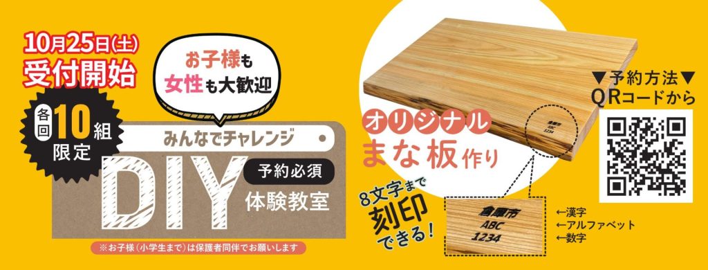 DIY教室のご予約方法は、下記画像のQRコードから登録いただけます。