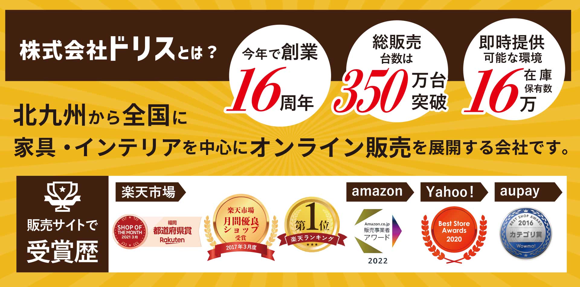 今回のイベントを運営する株式会社ドリスは、今年で創業15周年。家具・インテリアをオンライン販売するところからスタートし、現在までの総販売数は350万台突破、楽天市場・Amazon・Yahoo!ショッピングで数々の受賞歴もある成長企業です。オンラインだけに留まらず、SDGsの活動も展開しており、2024年には路面店「RE doris(リ・ドリス)」2号店となる戸畑店をオープンさせ、アウトレット品を安くご利用いただくサービスを行っております。黄色い看板が目印ですので、ぜひ立ち寄ってみてください。